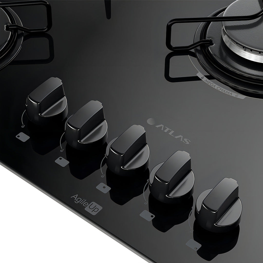 Cooktop 5 Bocas A Gás Atlas Agile Up Mega Chama Preto Bivolt