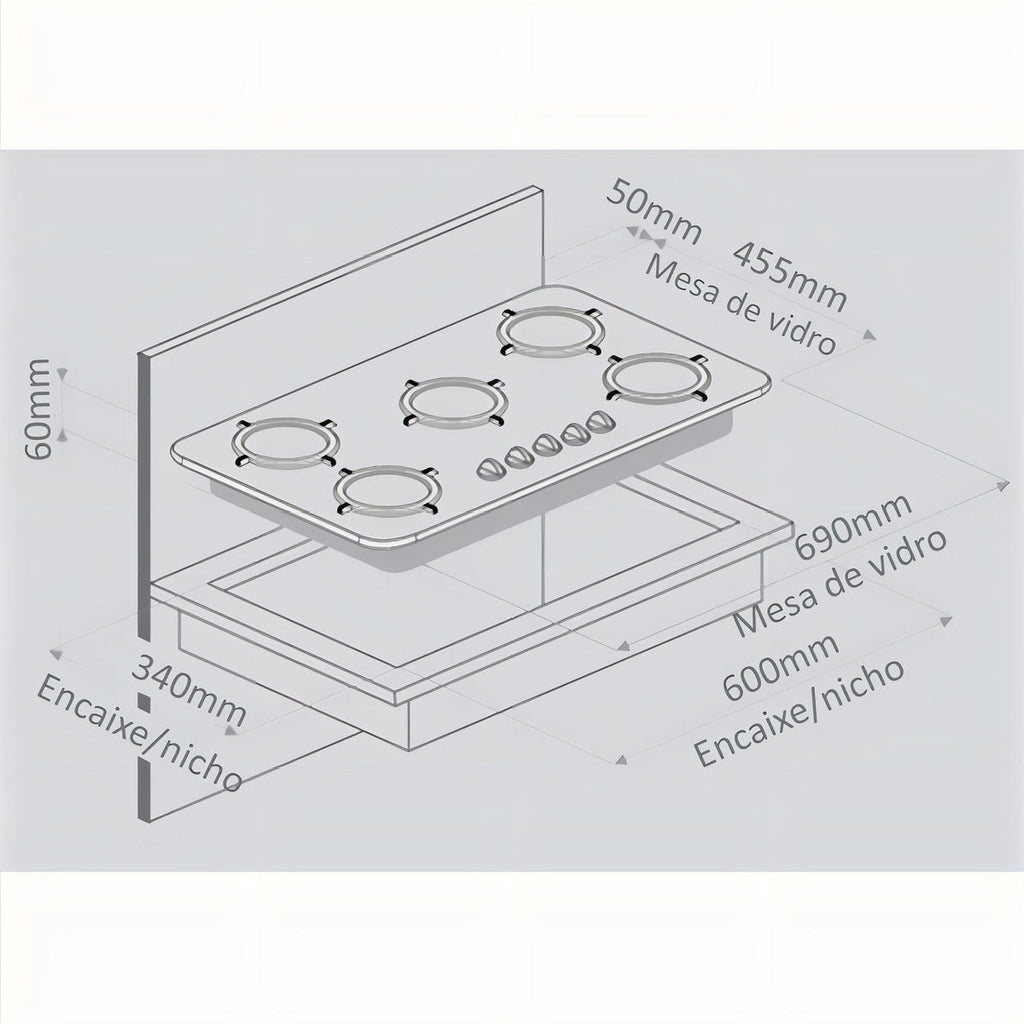 COOKTOP 5 BOCAS ACENDIMENTO AUTOMATICO BIVOLT