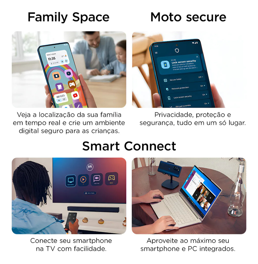 Inteligência que turbina a performance: Aproveite seu smartphone Motorola ao máximo: faça videochamadas imersivas e experimente a velocidade 5G ultraveloz, baixando temporadas inteiras da sua série favorita